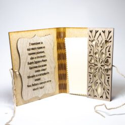 Дървени книжки с пожелания за всеки повод и джоб за пари.